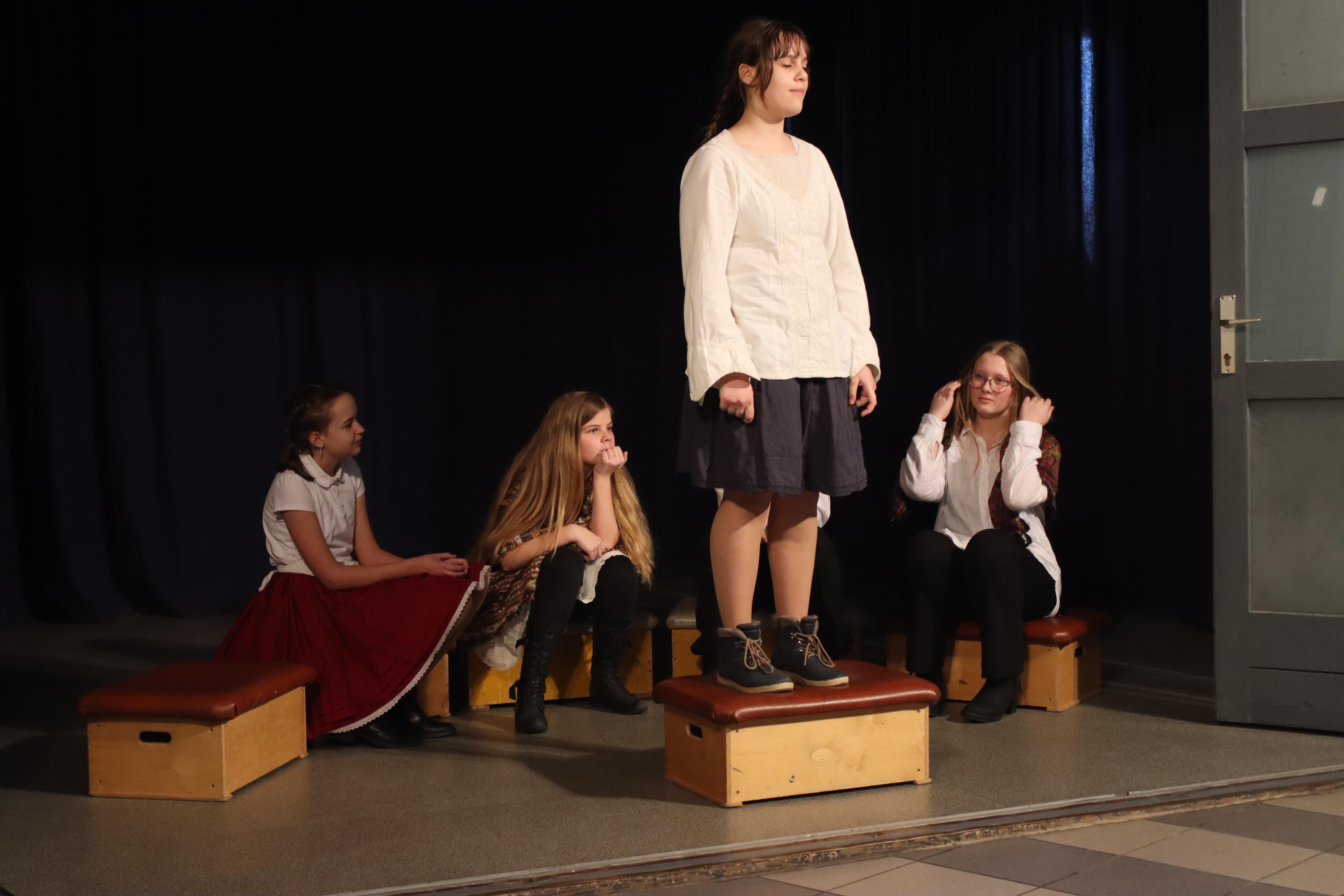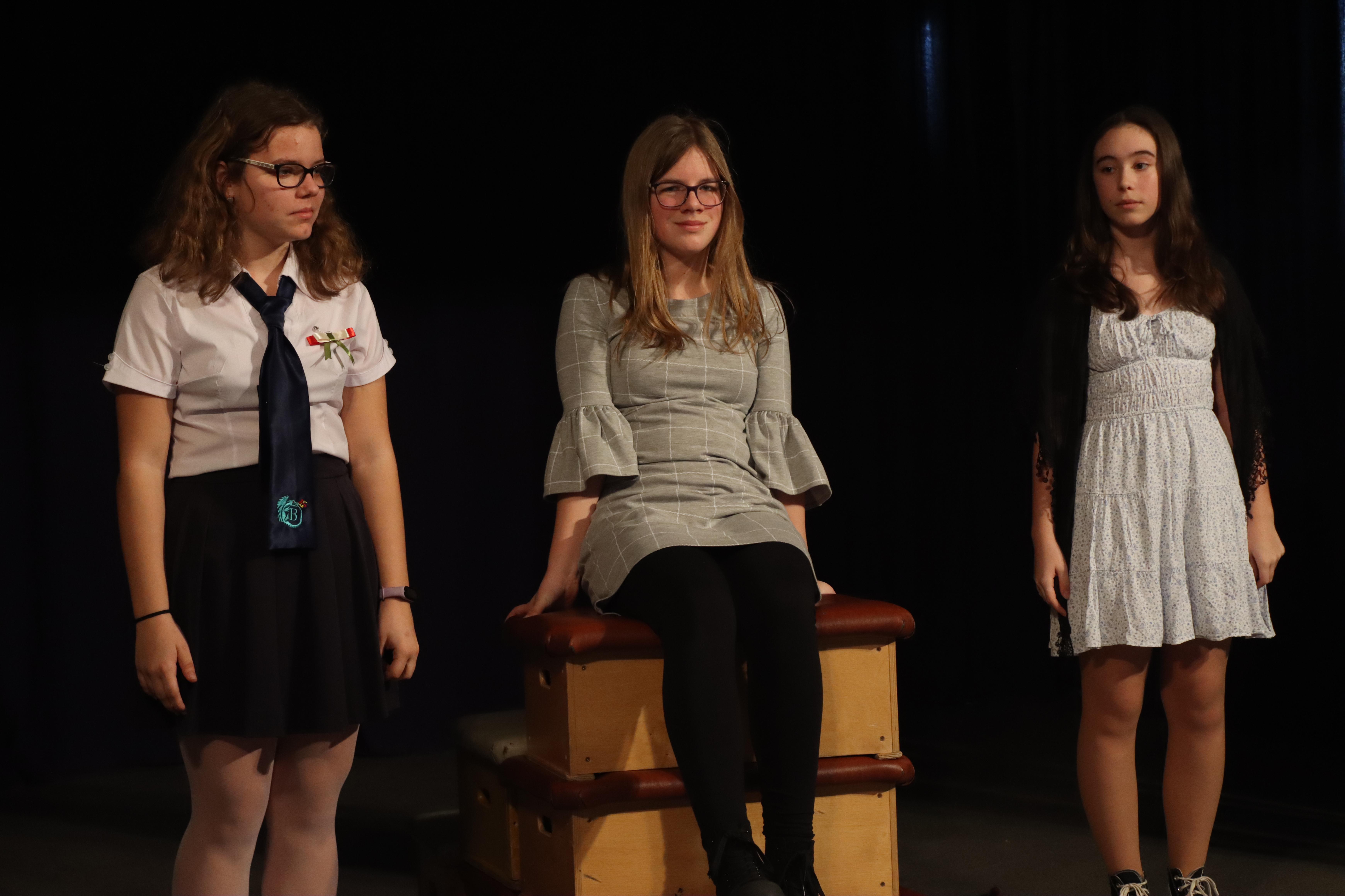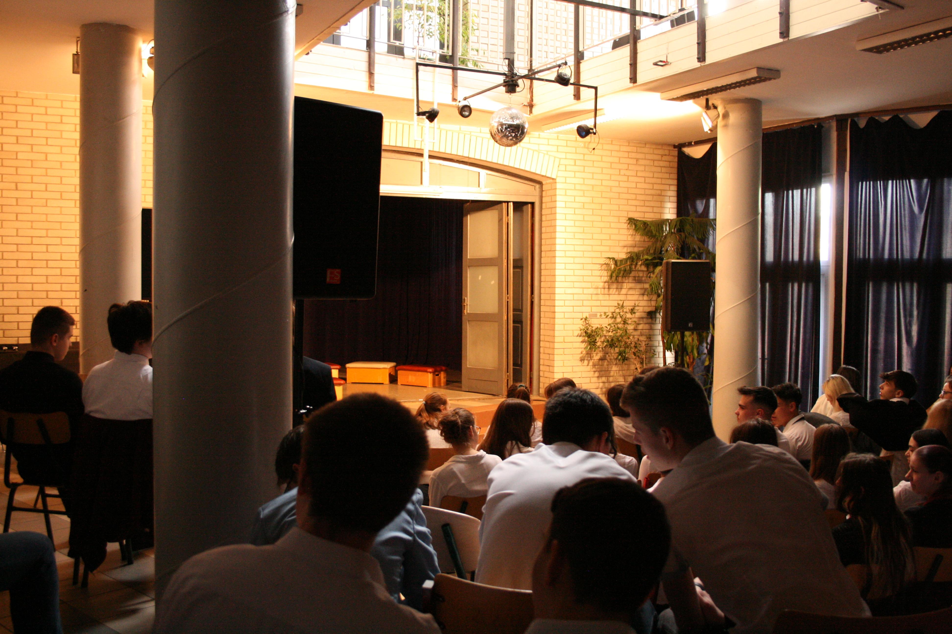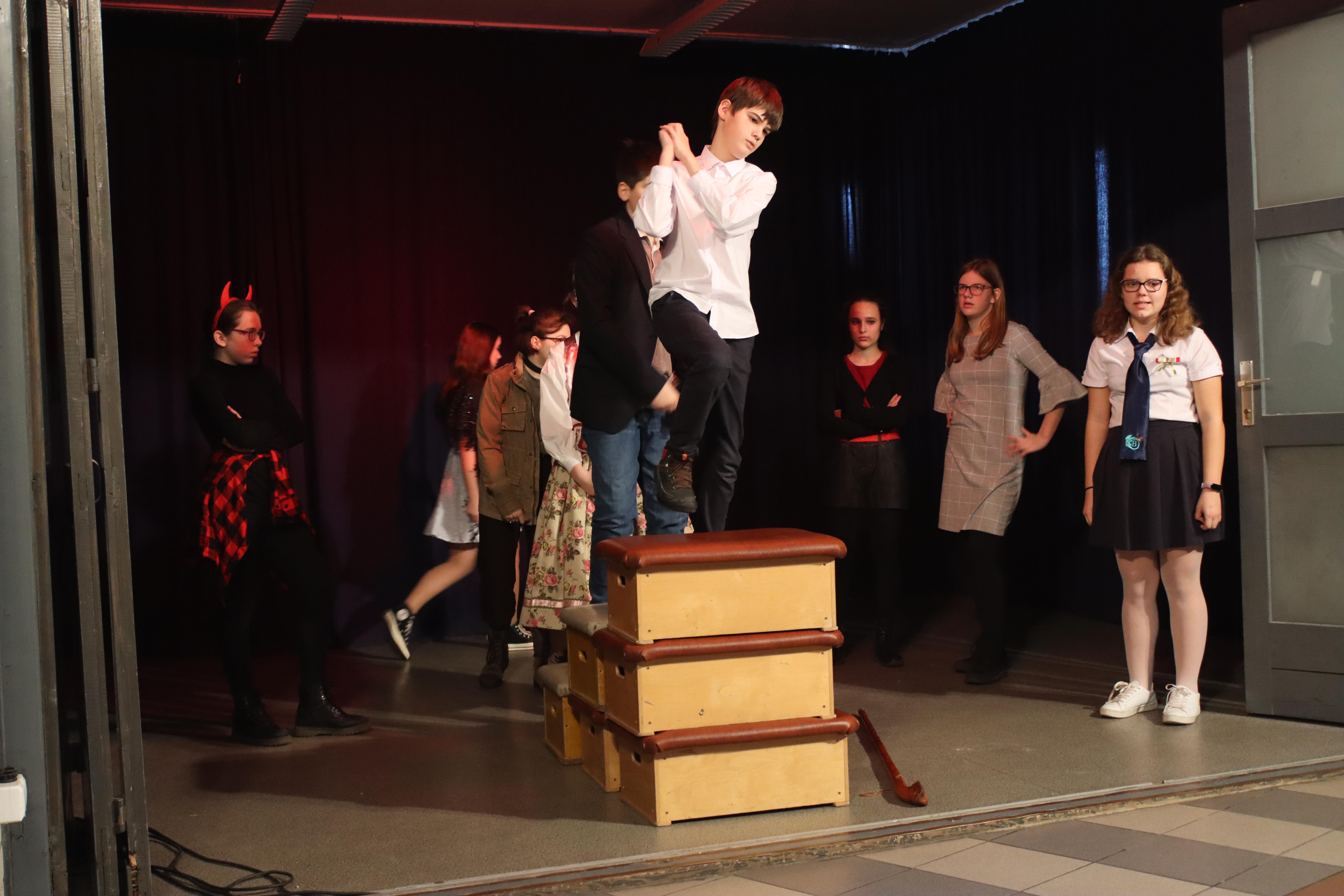 Gyülekező az előadás előtt. Fotó: Kecskeméti József / Diglió Himnuszéneklés. Fotó: Molnár Boldizsár István Józsi bácsi felkonferálja a színdarabot. Fotó: Molnár Boldizsár István Felkonf egy másik órában, egy másik fotón. Fotó: Kecskeméti József / Diglió Kezdődik a hetedikes színjátszósok előadása. Fotó: Kecskeméti József / Diglió Fotó: Kecskeméti József / Diglió Fotó: Kecskeméti József / Diglió Fotó: Kecskeméti József / Diglió Fotó: Kecskeméti József / Diglió Fotó: Kecskeméti József / Diglió Fotó: Kecskeméti József / Diglió Fotó: Molnár Boldizsár István Fotó: Kecskeméti József / Diglió Fotó: Molnár Boldizsár István Fotó: Kecskeméti József / Diglió Fotó: Kecskeméti József / Diglió Fotó: Kecskeméti József / Diglió Fotó: Kecskeméti József / Diglió Fotó: Kecskeméti József / Diglió Fotó: Kecskeméti József / Diglió Fotó: Kecskeméti József / Diglió Fotó: Kecskeméti József / Diglió Fotó: Kecskeméti József / Diglió Fotó: Kecskeméti József / Diglió Fotó: Kecskeméti József / Diglió Fotó: Kecskeméti József / Diglió Fotó: Kecskeméti József / Diglió Fotó: Kecskeméti József / Diglió Fotó: Kecskeméti József / Diglió Fotó: Kecskeméti József / Diglió Fotó: Kecskeméti József / Diglió Fotó: Kecskeméti József / Diglió Fotó: Kecskeméti József / Diglió Fotó: Kecskeméti József / Diglió Fotó: Kecskeméti József / Diglió Fotó: Kecskeméti József / Diglió Az összes színjátszós az előadás végén. Fotó: Kecskeméti József / Diglió Fotó: Kecskeméti József / Diglió Fotó: Molnár Boldizsár István Vidám nézők. Fotó: Molnár Boldizsár István Fotó: Molnár Boldizsár István Fotó: Molnár Boldizsár István Így néz ki a színpad előadók nélkül. Fotó: Molnár Boldizsár István Fotó: Molnár Boldizsár István A nézőközönség egy másik órában. Fotó: Kecskeméti József / Diglió A szózat után visszavonultak a népek az osztálytermekbe. Fotó: Kecskeméti József / Diglió